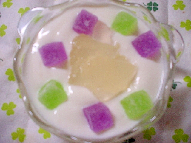 蒟蒻ゼリーとカラフルゼリーのwゼリーヨーグルト レシピ 作り方 By デブネコたん W ノ 楽天レシピ